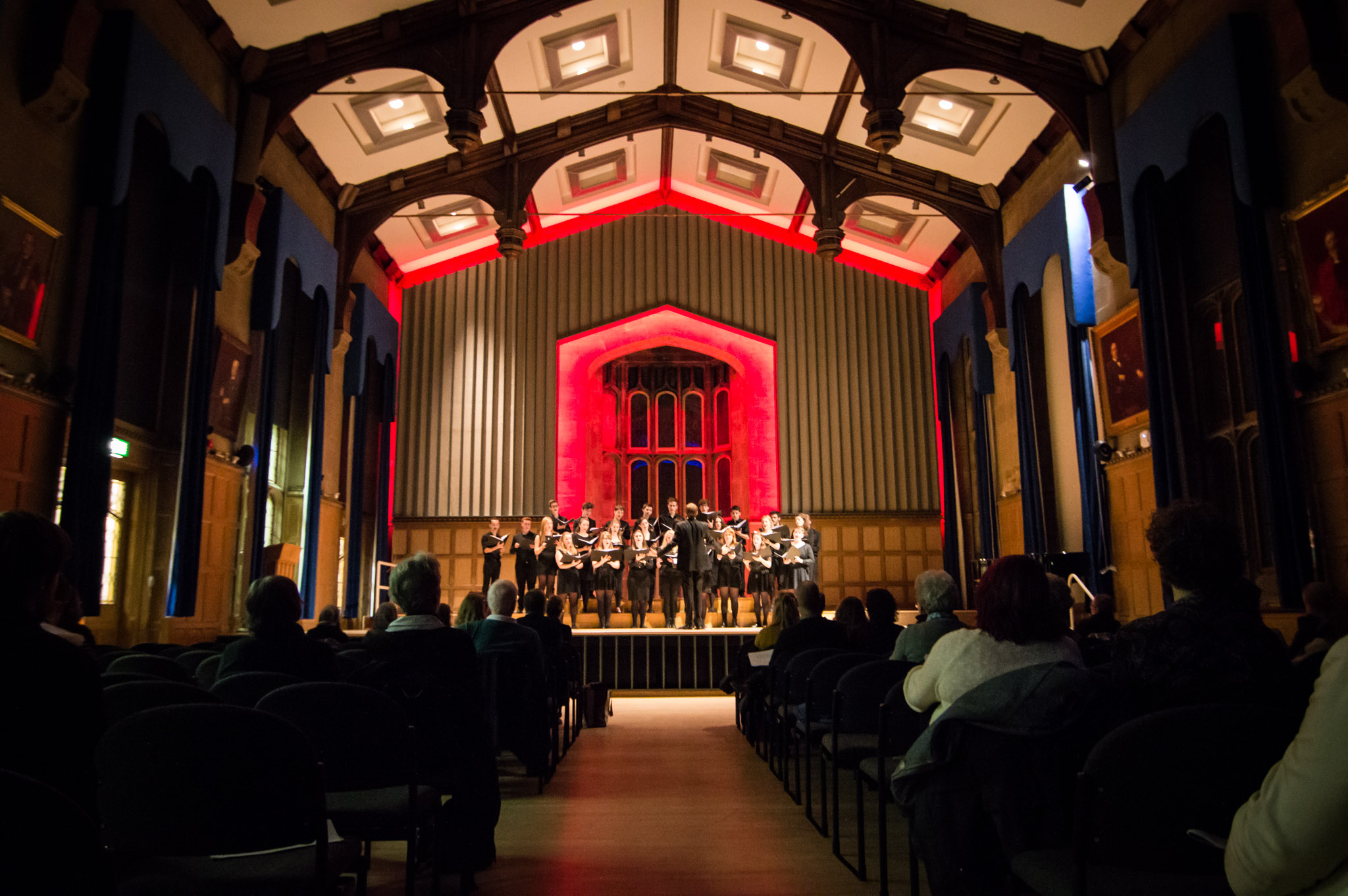 With its high vaulted ceiling, large leaded windows and oak panelling, the Hall lends itself perfectly to a classical setting. Extensively utilised throughout the year for the University Concerts Series, Firth Hall has a large concert platform and a seating capacity of 380.